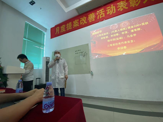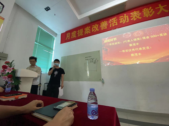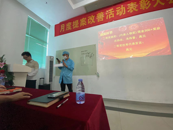 Manager Wang of the Second Production Department of the South China Factory said that the number of cases and the quality of proposals have been continuously improved, and the improvement of lean proposals will continue to move forward in a normalized manner. It is hoped that the award-winning employees will continue to actively participate in the improvement activities of lean proposals, and encourage other employees to brainstorm and use a scrutiny perspective to find all unreasonable points in the work, formulate improvement measures, make the work more convenient, more standardized, and make the enterprise become more efficient and competitive.